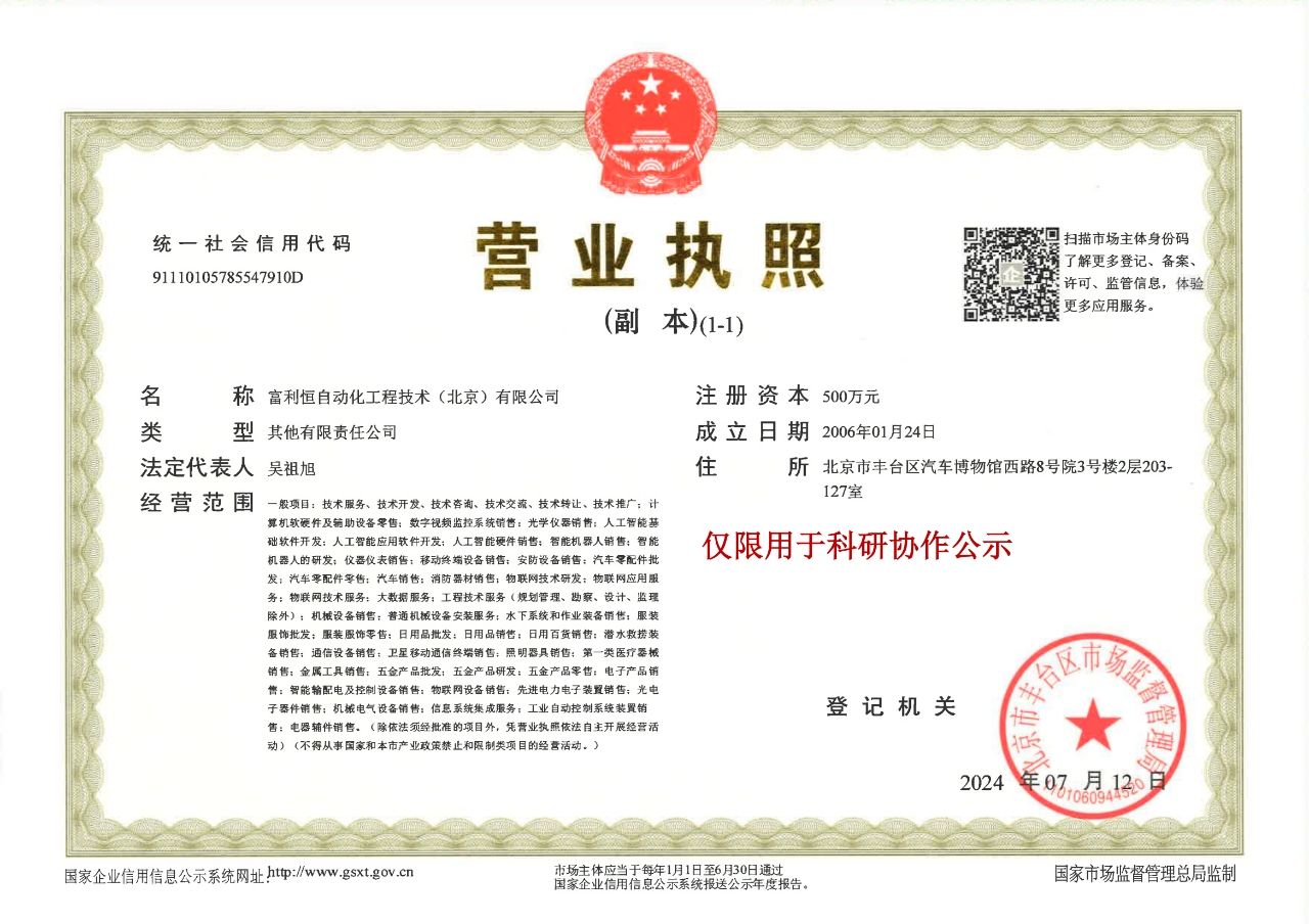 科研协作项目管理办法(试行)》文件规定,为加强学校科研协作项目的管理,基于AI的全国产化多光谱成像测量装备产业化关键技术与工艺研发的顺利进行。富利恒自动化工程技术(北京)有限公司与项目负责人秦翰林将开展科研合作,现将合作相关事项公示如下: