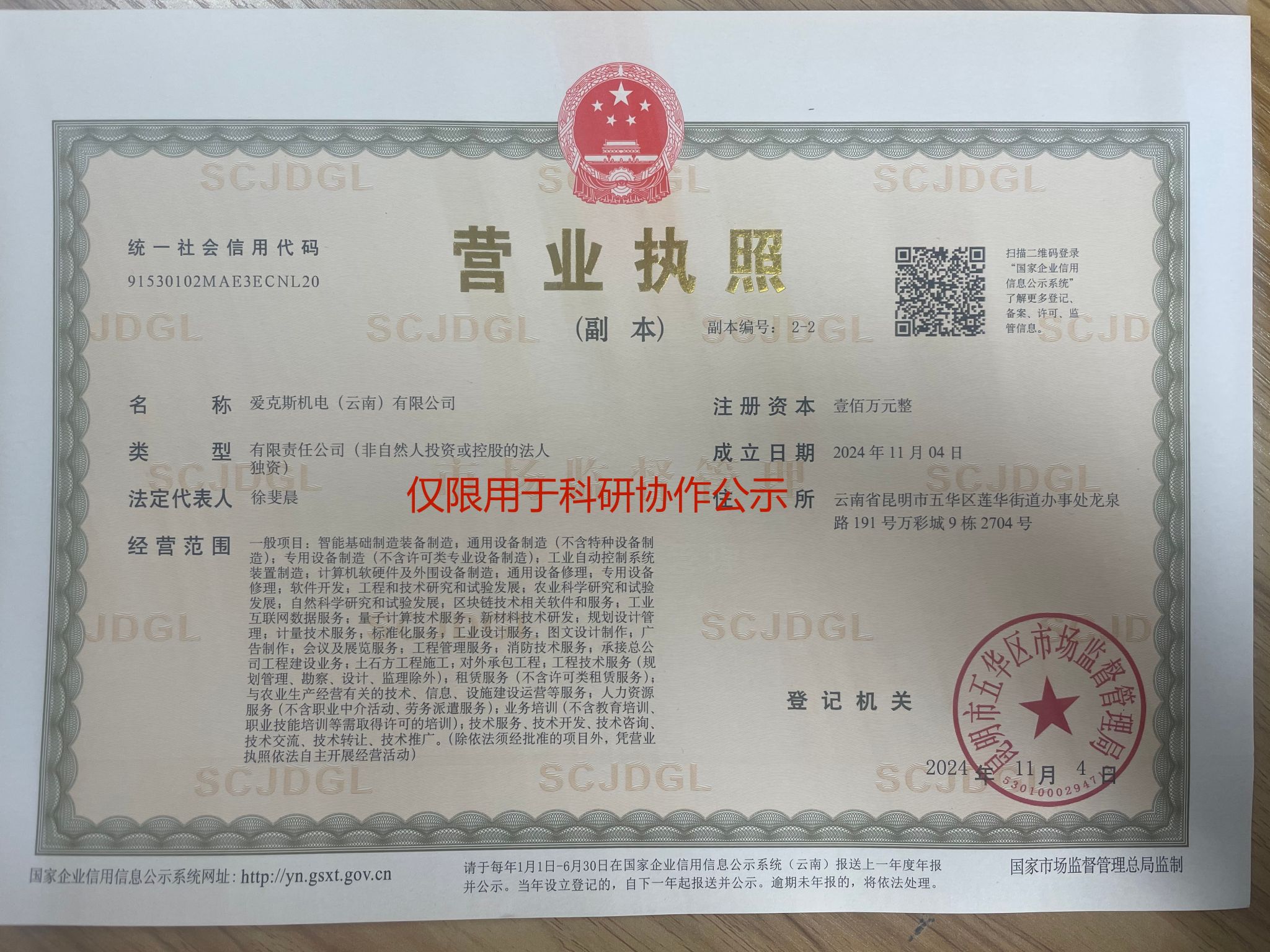 科研协作项目管理办法(试行)》文件规定,为加强学校科研协作项目的管理,灵巧相机研制的顺利进行。爱克斯机电(云南)有限公司与项目负责人杨硕闻将开展科研合作,现将合作相关事项公示如下: