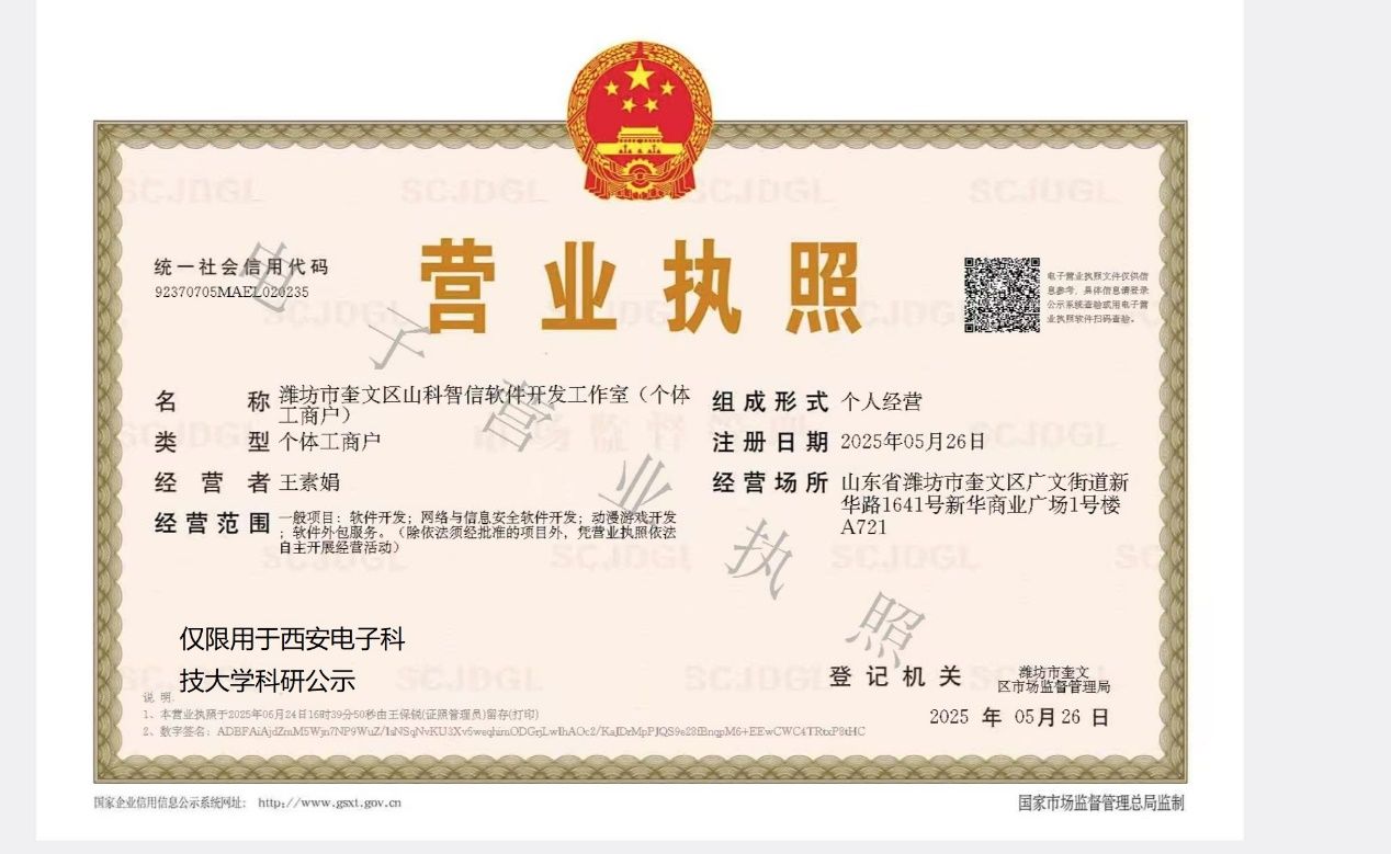 科研协作项目管理办法(试行)》文件规定,为加强学校科研协作项目的管理,确保我方承接的智能样本数据仿真系统项目研发的顺利进行。我校项目负责人孙浩将与潍坊市奎文区山科智信软件开发工作室(个体工商户)开展科研合作,现将合作相关事项公示如下: