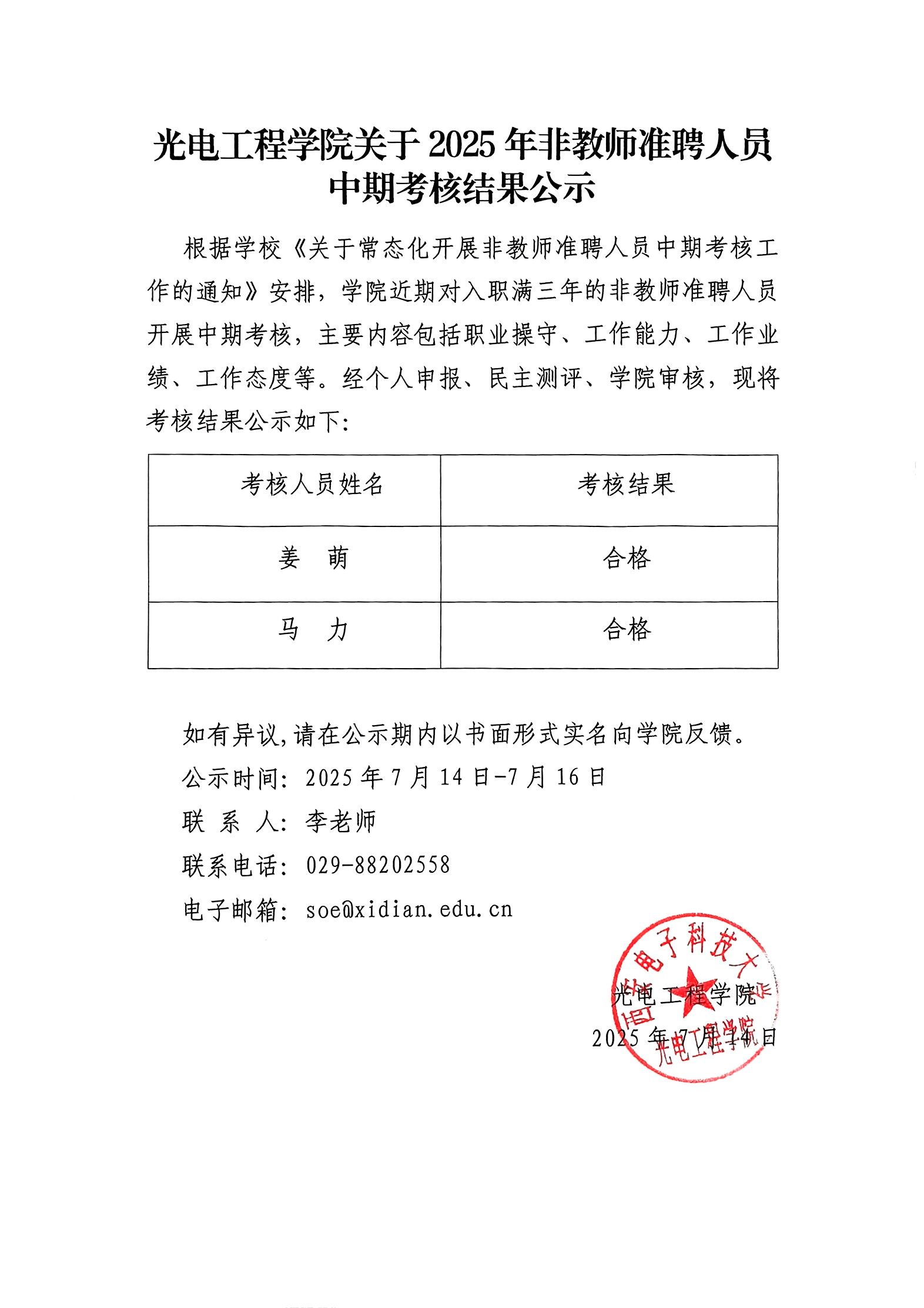 韩漫基地 关于2025年非教师准聘人员中期考核结果公示