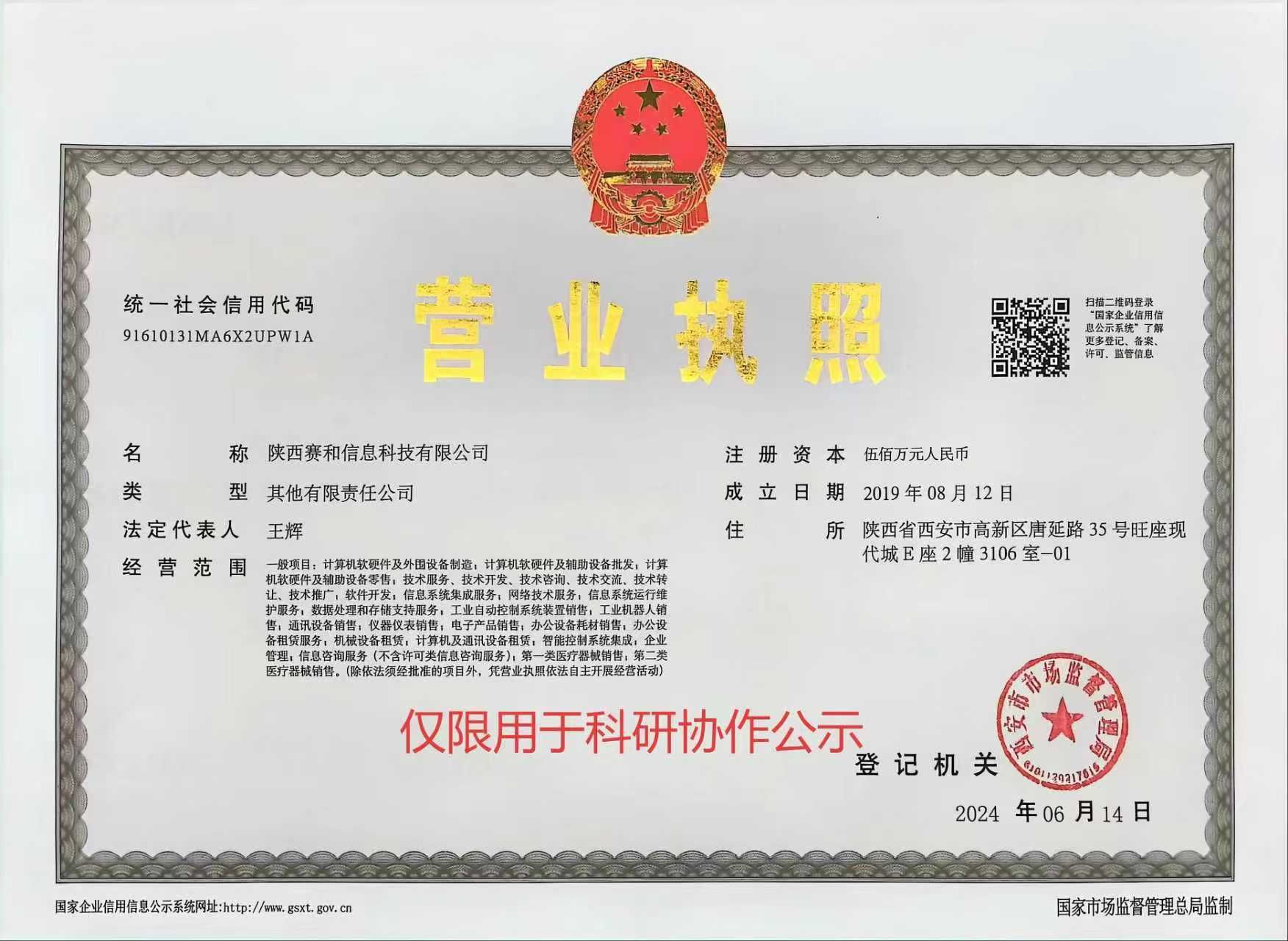 科研协作项目管理办法(试行)》文件规定,为加强学校科研协作项目的管理,确保基于AI的全国产化多光谱成像测量装备产业化关键技术与工艺研发的顺利进行。 陕西赛和信息科技有限公司与项目负责人秦翰林将开展科研合作,现将合作相关事项公示如下: