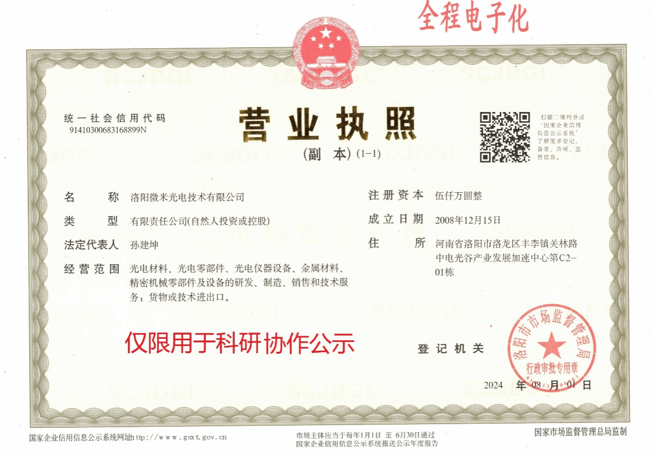 合作内容:乙方按甲方所提供镜片加工需求,结合乙方实际工艺能力,为甲方提供卡式短波光学镜片工艺代加工服务;外协单位具有光电材料、光电零部件研发、制造能力,可加工我方需要的特殊短波镜片。