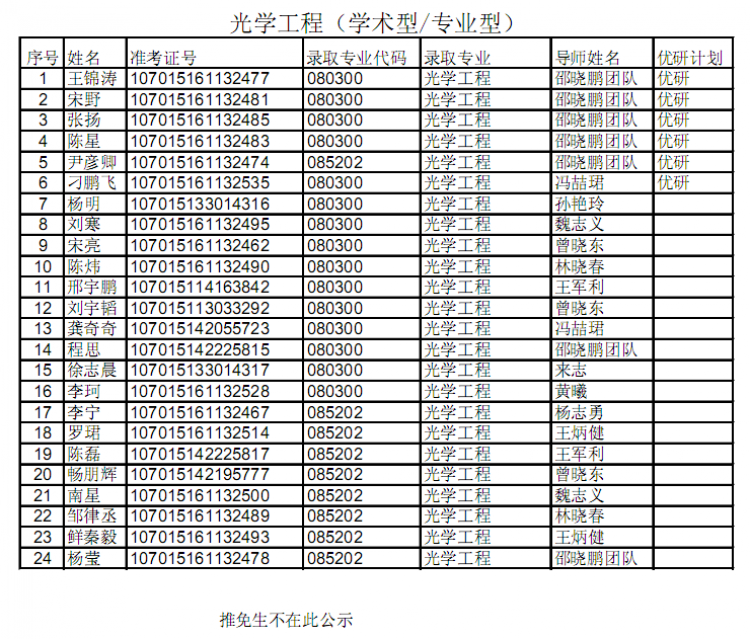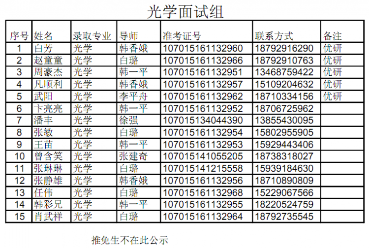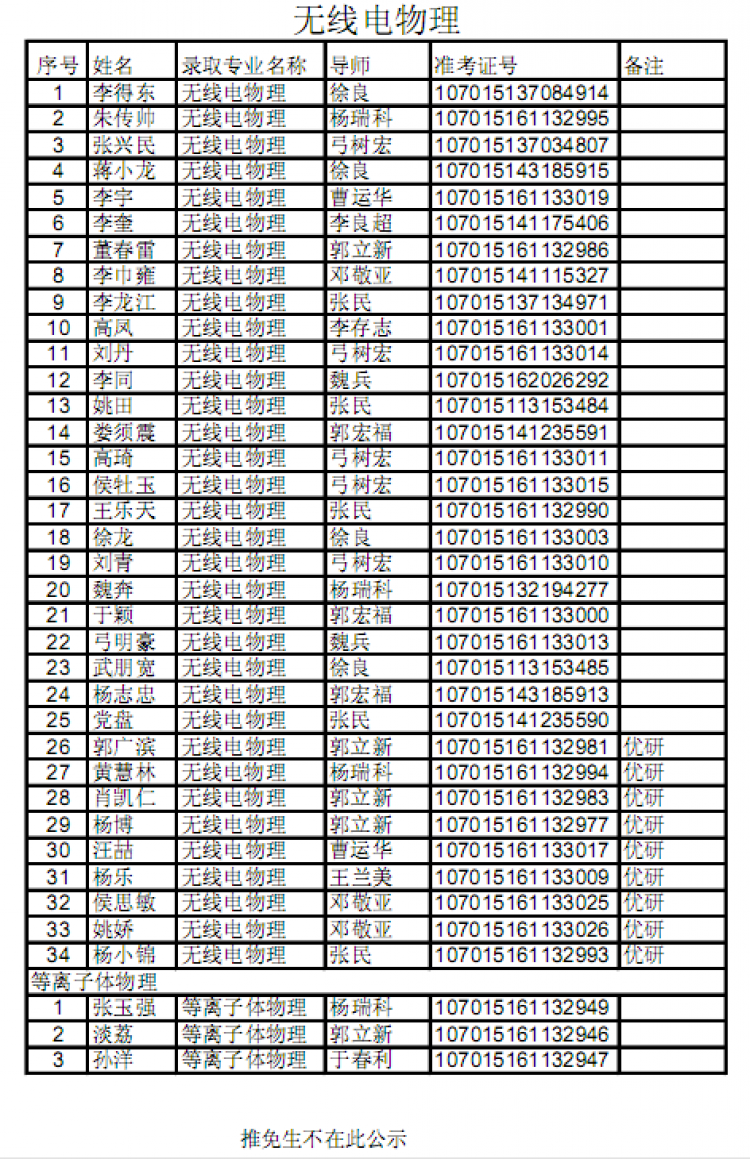 【公示】物理与韩漫基地 2015级硕士研究生拟录取名单公示