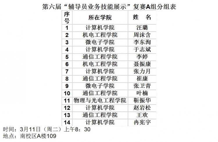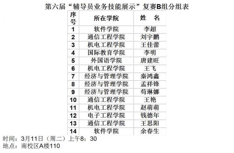 【学校】第六届“辅导员业务技能展示”复赛分组表