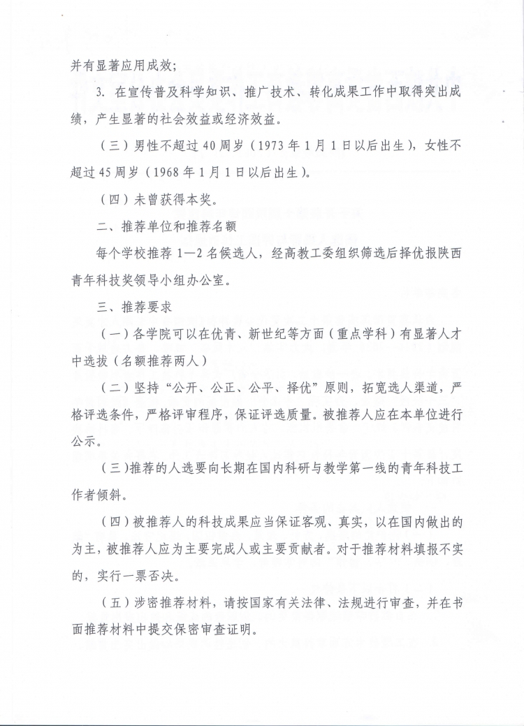 关于开展第十届陕西青年科技奖候选人推荐与评选工作的通知