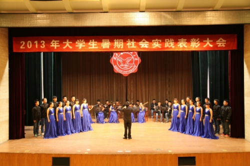 2013年大学生暑期社会实践活动总结表彰大会在南校区小剧场举行。党委副书记龙建成出席表彰大会。