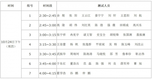 具体测试时间安排如下: