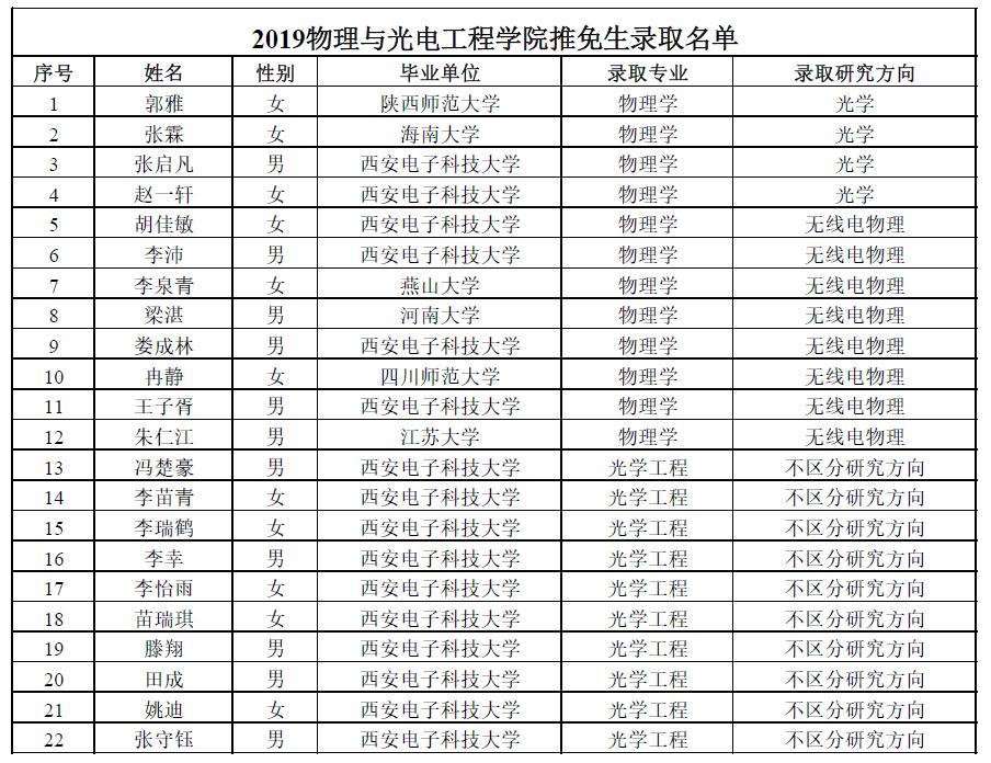 根据有关规定,现对物理与韩漫基地 2019年推免生录取名单予以公示,公示期为10天。