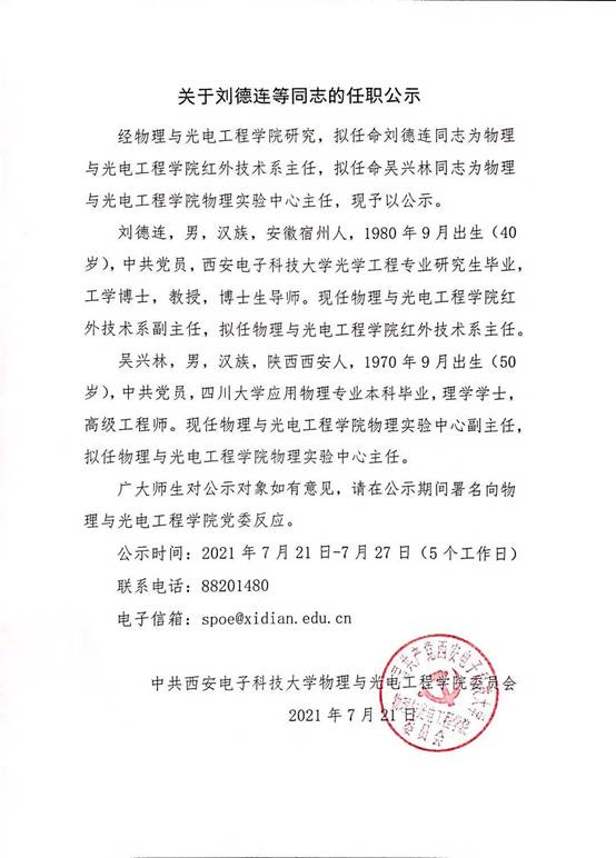 关于刘德连等同志的任职公示
