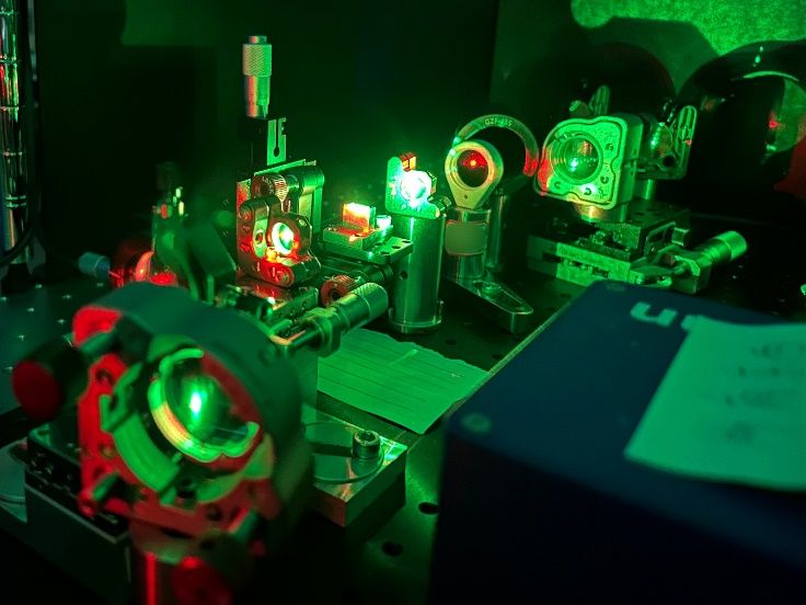超快激光技术与应用研究中心采用自行研制的10 W级GHz重复频率克尔透镜锁模Yb:CYA激光振荡器作为泵浦源,实现了瓦量级多GHz重复频率的飞秒OPO运转。OPO输出信号光的波长调谐范围为1.41–1.64 μm,最大平均功率1.58 W,最短脉冲宽度139 fs,重复频率1 GHz;中红外闲频光的波长调谐范围为2.8–4.0 μm,最大平均功率1 W,最短脉冲宽度103 fs,重复频率1 GHz。通过调整腔长,分别获得了2 GHz、3 GHz和4 GHz重复频率的信号光输出,各重复频率下输出功率均超过1 W。据我们所知,该成果实现了目前GHz重复频率飞秒OPO的最高功率输出。相关成果发表在Opt. Lett. 50, 2453-2456 (2025)。论文第一作者为团队青年教师同晖,合作单位包括陕西理工大学、上海交通大学、中山大学和中国科学院物理研究所。