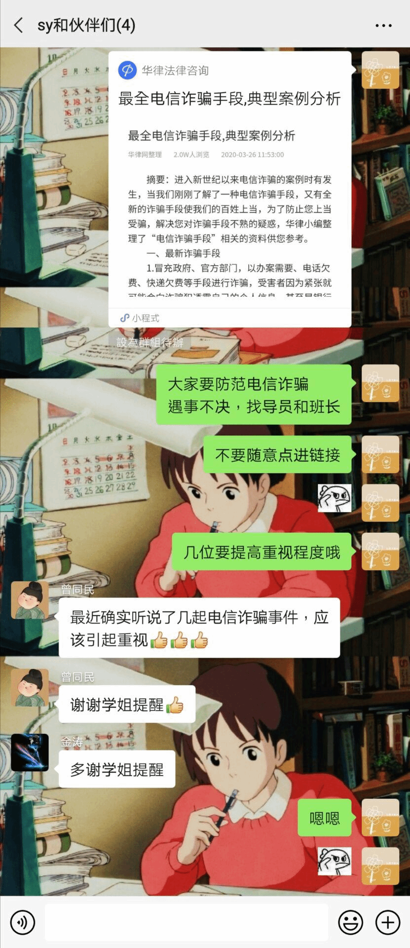 2020年9月17日,今天进行了领航员的对接活动,此前有在微信里线上聊天,我和几位学弟拉了一个微信群,大家都很热情,乐于提问并乐于分享。作为领航学姐,我特别希望他们三人能够尽快适应大学生活,找到合适自己的生活节奏,投入于学业,热心于社团活动,然后可以从心底觉得:西电是最正确的选择!