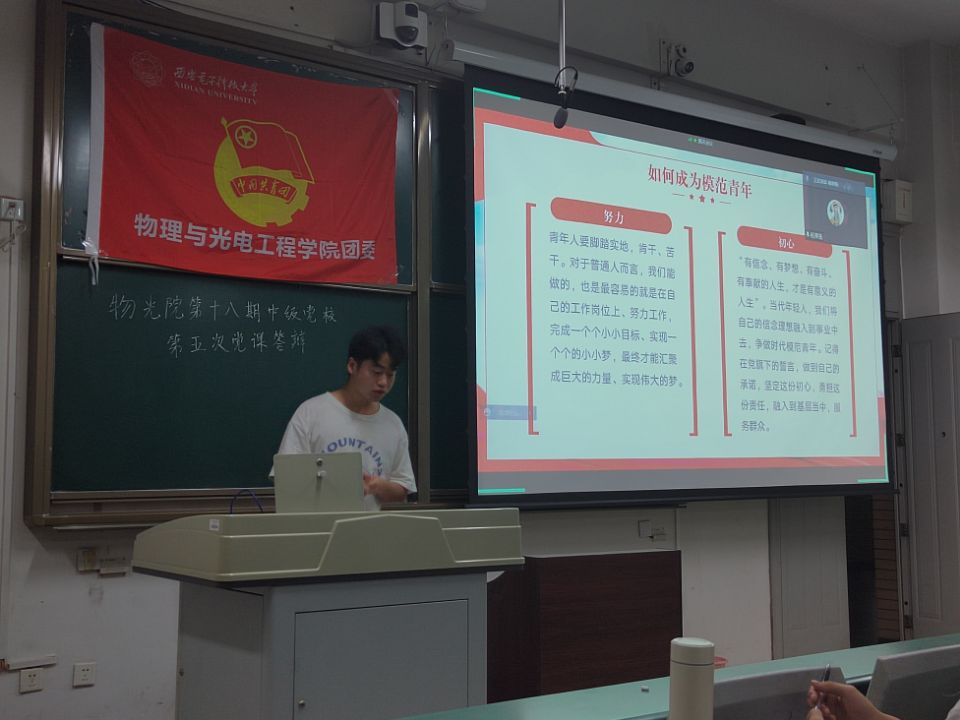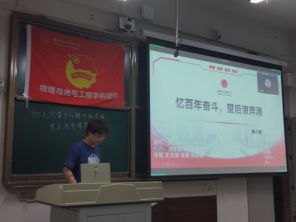 、物理学院第18期中级党校第五次党课在南校区教学楼A楼314教室进行。本次党课以“喜迎二十大、永远跟党走、奋进新征程”为主题,全体学员分为9组,在分组讨论的基础上,通过答辩展示分享学习成果、交流学习心得。