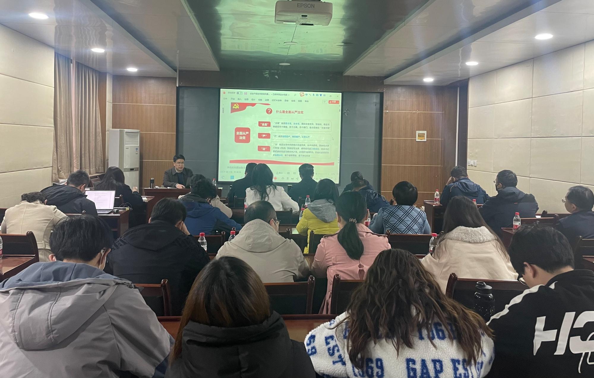 房亮从新时代全面从严治党新部署、违纪违法典型案例、学校党风廉政建设的形式与任务、筑牢廉洁自律思想防线等四方面开展主题宣讲。他以“什么是全面从严治党、为什么要全面从严治党”为切入点,详细解读了新时代全面从严治党的重大历史意义,带领学院教职工深入学习领会了党的二十大报告、二十届中央纪委二次全会、2023年教育系统全面从严治党工作视频会中关于全面从严治党的重要论述。接着,房亮深度剖析了党的十八大以来查处的高校党员教师和党员领导干部的典型案例,对党的六项纪律、中央八项规定、十项准则、“红七条”以及师德师风等方面做了系统的阐述与宣讲,对学校党风廉政建设的形势与任务进行说明。他表示,广大党员干部要知敬畏、存戒惧、守底线,带头遵守党章党规党纪,带头严明政治纪律和政治规矩,把信任当作责任、把严管当作厚爱,自觉接受监督,不仅管好自己的“手”和“嘴”,还要注重家庭家教家风,始终保持清正廉洁的政治本色。
