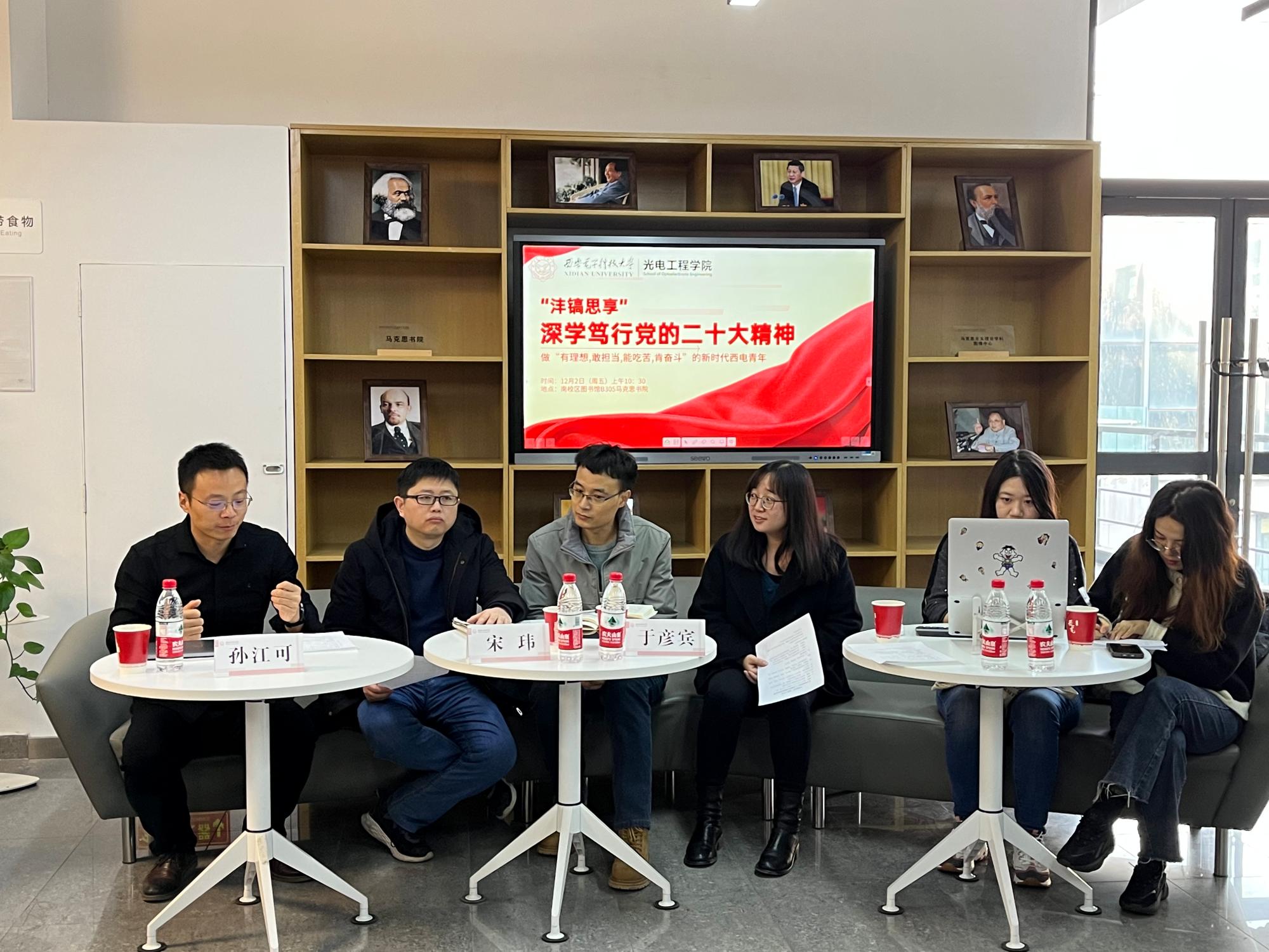 联合马克思主义学院“沣镐思享”思政工作室在图书馆B305马克思书院开展“深学笃行党的二十大精神,做有理想、敢担当,能吃苦,肯奋斗的新时代青年”专题研讨活动。马克思主义学院教师孙江可、宋玮、于彦宾,韩漫基地