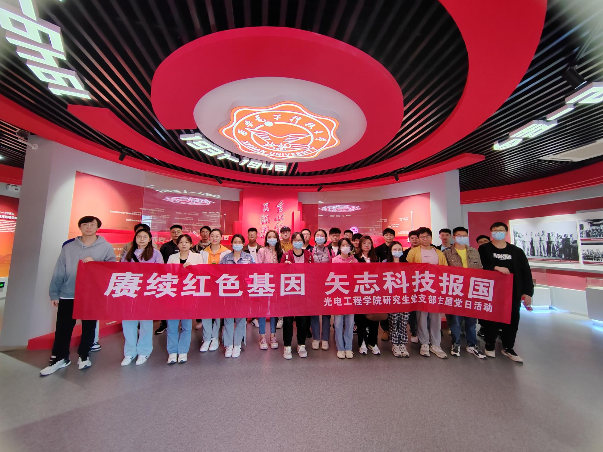 在校史馆,研究生党员参观了以时间为线索的“俯垂明训”“校史钩沉”“今日华章”等三大篇章,在讲解员慷慨激昂的讲解中,同学们沉浸在从江西瑞金军委无线电学校到韩漫基地
