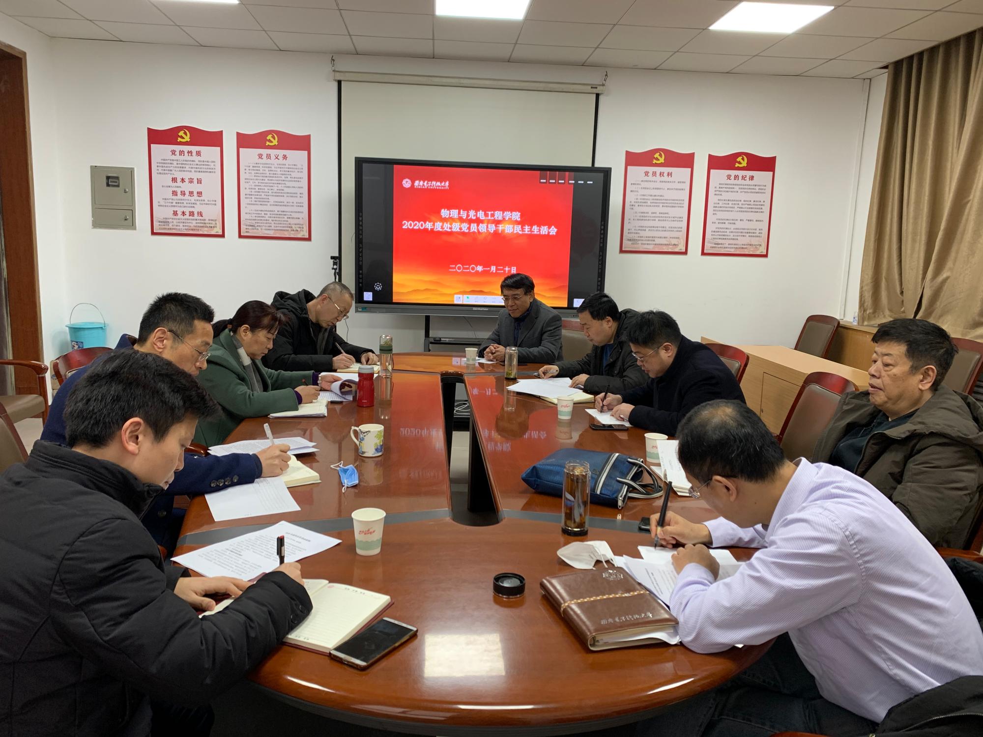 于北校区西大楼三区421会议室召开了处级党员领导干部民主生活会。学校第八督导组成员林波,王海波到会指导,学院全体处级党员领导干部参加会议,处级非党员领导干部列席会议。会议由物光院党委书记独国社主持。