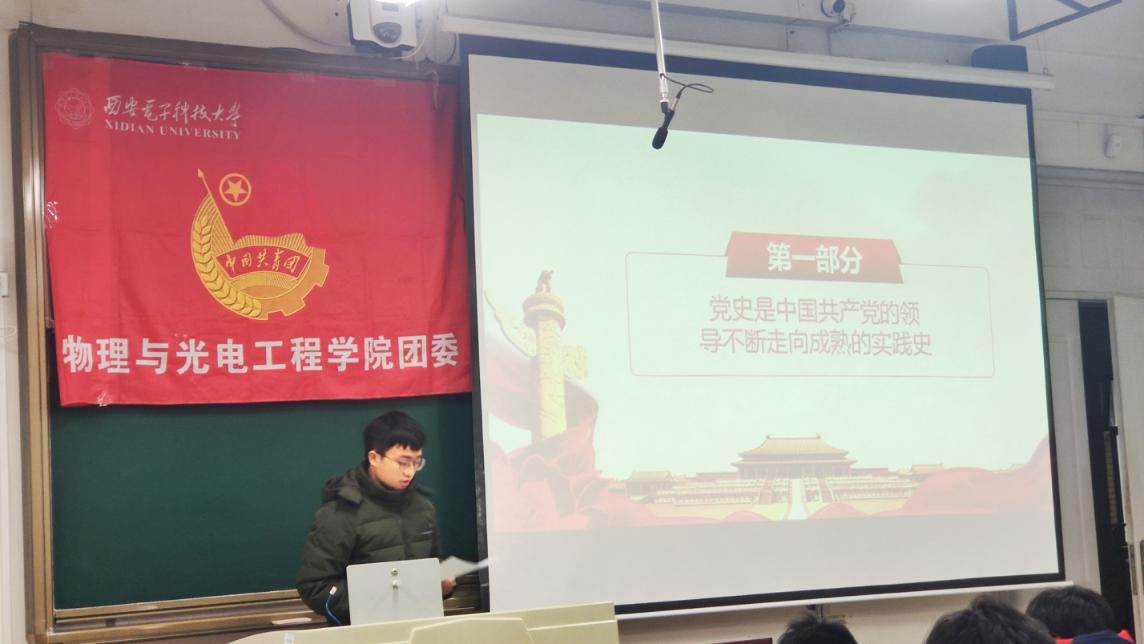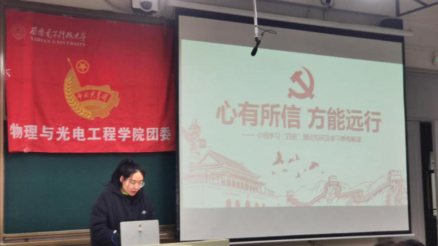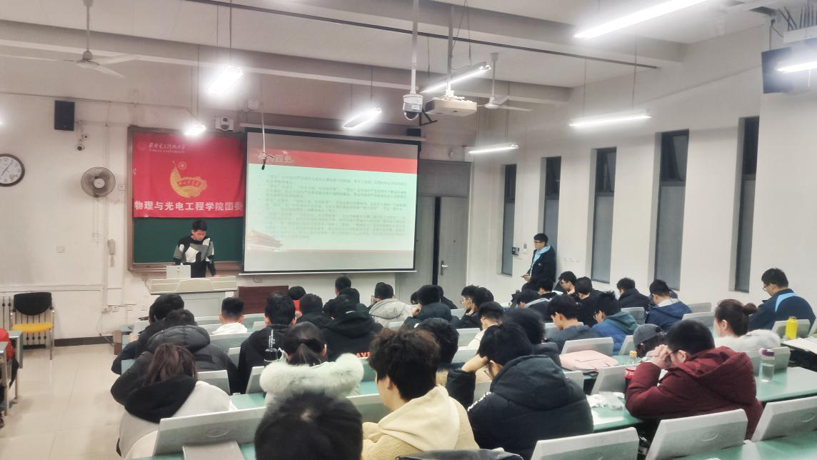 第十五期中级党校第三次党课在南校区教学楼A楼211教室进行。本次党课由各学员分小组围绕“加强‘四史’学习,做新时代青年”主题,通过答辩形式分享学习成果、开展讨论交流,本次活动由物光院团委组织部干事董亚霖主持。