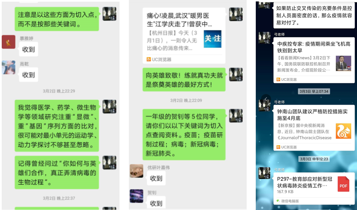 党委关于同心抗“疫”的号召,物光院教师党支部、研究生党支部紧密联系,借鉴联合临时党支部的组织形式,依托支部微群、三会一课、线上课程等交流平台,以“服务型”党支部建设为工作基础,在春分时刻,全面开展教师、研究生党支部结“对”抗“疫”工作。