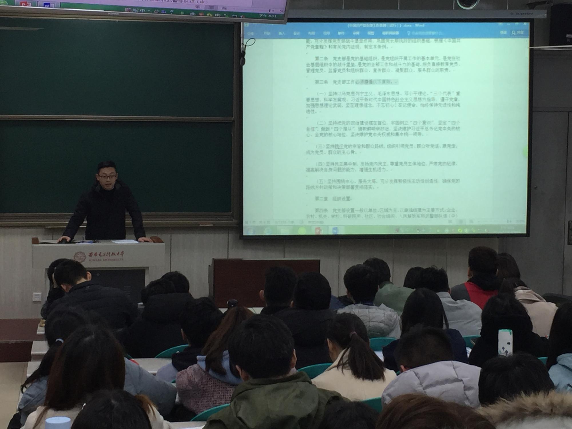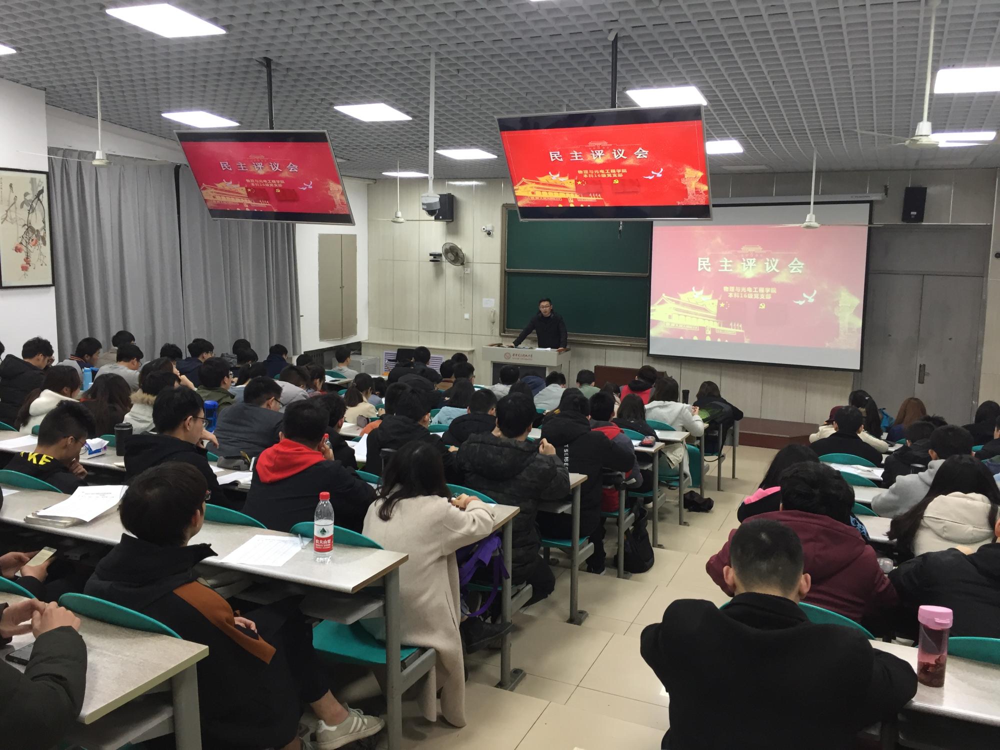(通讯员:史公鹏)为深入学习贯彻习近平新时代中国特色社会主义思想,持续推进“两学一做”学习教育常态化制度化,提升基层党组织组织力,按照上级组织的要求和学院党委统一部署,在经过充分准备的基础上,2月28日晚,学院本科16级党支部在南校区B211教室召开2018年度组织生活会和民主评议党员。会议由支部书记史公鹏主持,全体党员参加会议。
