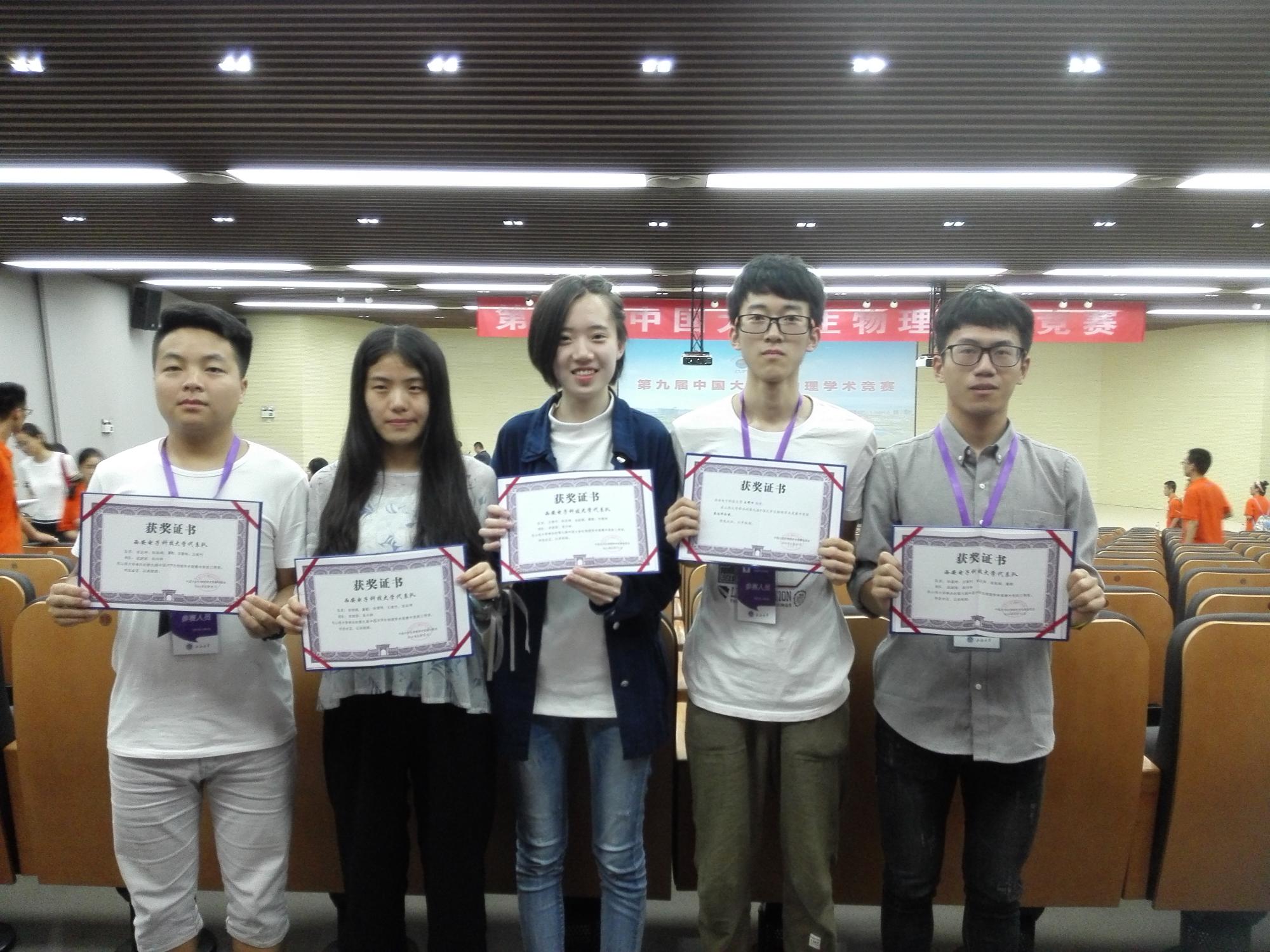 (通讯员:武颖丽)8月15日至20日,第九届中国大学生物理学术竞赛(CUPT)在山西太原举行,本届大赛共有北京大学、清华大学、南开大学、西安交通大学等61所高校参赛。经过与中国科技大学、哈尔滨工业大学等著名高校5轮同台竞技,我校代表队获得团体三等奖、王修竹同学获最佳评论方奖。我校于2016年12月成立了CUPT委员会,由主管副校长担任主席、教务处和物理与韩漫基地 负责人共同担任副主席,组建了竞赛指导教练组,...