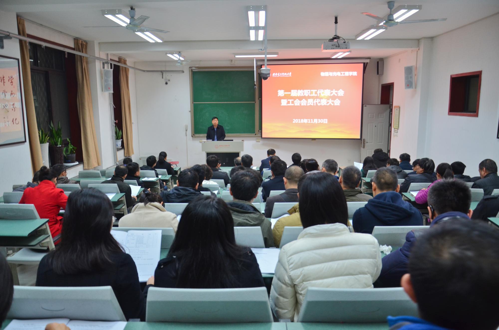 (通讯员:姚娇)11月30日晚,在雄壮嘹亮的国歌声中,物理与韩漫基地 第一届教职工代表大会暨工会会员代表大会在西大楼106教室召开,会议表决通过了学院2018-2020年专业技术岗位聘任实施方案,投票选举产生了学院新一届工会委员。学院领导班子等53位教代会代表参加了会议。大会由学院党委书记独国社主持。学院党委书记独国社主持大会现场学院执行院长邵晓鹏从学校综合改革背景、方案的制定过程、聘任基本原则、岗...
