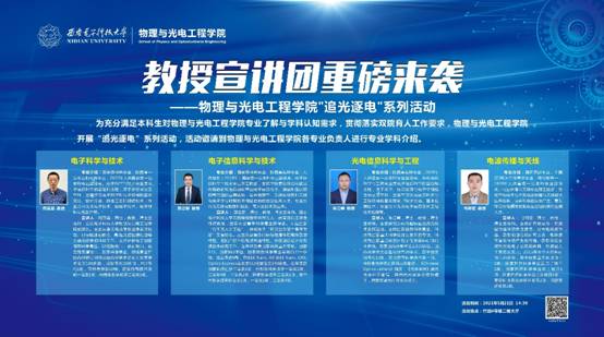 (通讯员:王纲 袁本柱 罗庆辉)为贯彻落实“双院育人”工作要求,充分满足本科生对学院专业了解与学科认知需求,物理与韩漫基地 开展“追光逐电”系列专业介绍活动。5月21日,物理与韩漫基地 各专业负责人组成教授宣讲团走进书院,面对面为电子信息大类新生及大三学生做学科专业推介。竹园3号书院党委副书记穆宏浪、办公室主任王禛、2020级辅导员及学生等近百人参加了教授宣讲团活动。活动由物理与韩漫基地 党委副书...