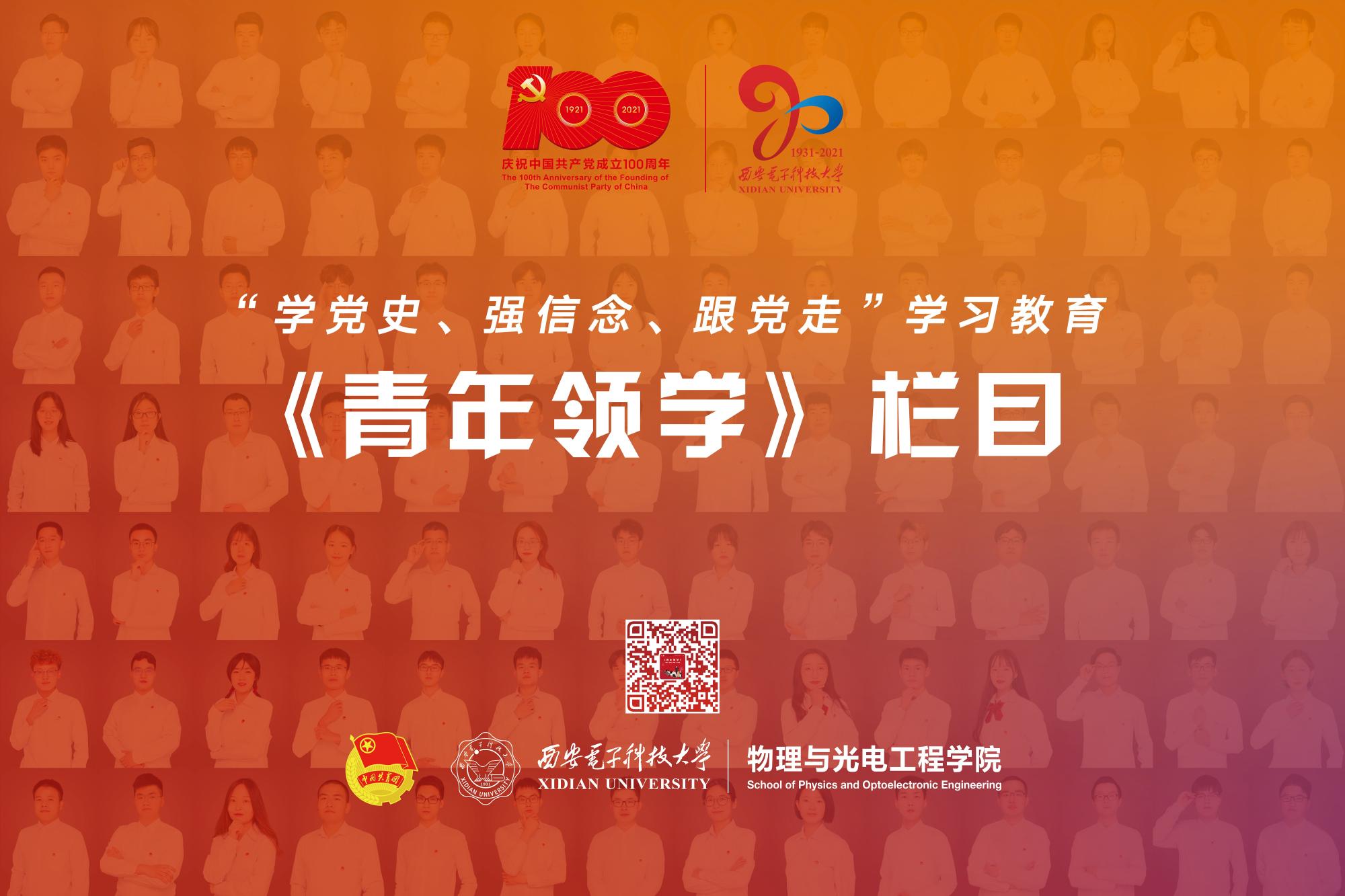 编者按:为庆祝中国共产党成立100周年,深入学习贯彻习近平总书记在党史学习教育动员大会上的重要讲话精神,落实团中央“学党史、强信念、跟党走”学习教育要求,引领广大团员青年厚植爱党、爱国、爱社会主义的情感,物理与韩漫基地 紧紧围绕学史明理、学史增信、学史崇德、学史力行,重点突出“英雄”主题,用好英雄事迹和英雄精神这一“教科书”,依托“西电物光院”官方微信和“喜马拉雅FM”电台推出《青年领学》栏目,教育引导广大青年同“...