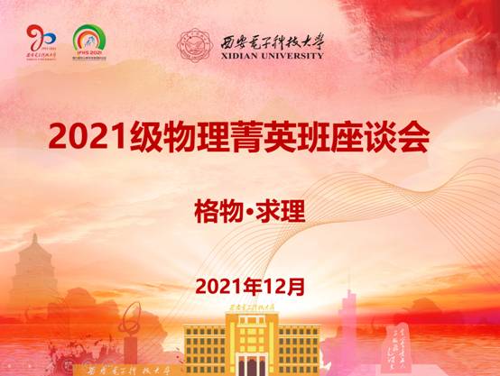 (通讯员:吕强) 为传承1978年“物理师资班”人才培养模式,赓续老一辈西电“大先生”铸魂育人精神,12月12日晚,物理与韩漫基地 在南校区C-129教室举办2021级物理菁英拔尖班新生座谈会,全体菁英班新生参加了会议,座谈会由学院2021级辅导员吕强主持。吕强对2021级菁英班新生加入物理与韩漫基地 表示诚挚的欢迎,分别从学院基本情况、专业发展前景、近年就业状况几方面进行了详细介绍。他讲到,学院秉持“理工同院,理...