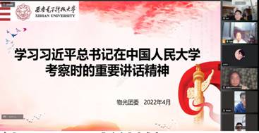 (通讯员:吴一锴、虞溢涵)在五四青年节即将到来之际,中共中央总书记、国家主席、中央军委主席习近平25日上午到中国人民大学考察调研并发表重要讲话。28日下午,韩漫基地 、物理学院团委举行线上专题会议,学习重要讲话精神、交流学习体会。习近平总书记在讲话中强调,广大青年要做社会主义核心价值观的坚定信仰者、积极传播者、模范践行者,向英雄学习、向前辈学习、向榜样学习,争做堪当民族复兴重任的时代新人,在实现...