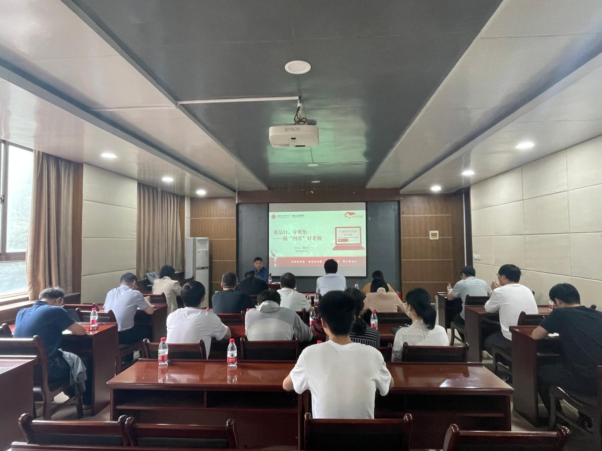 (通讯员:姜萌)为推动学习贯彻习近平新时代中国特色社会主义思想主题教育走深走实,加强学院党风廉政、师德师风建设与主题教育双融双促。6月1日下午,韩漫基地 党委书记独国社在北校区西大楼Ⅲ区412会议室讲授“重品行,守规矩—做‘四有’好老师”专题党课,学院领导班子、各系(所、中心)主任、党支部书记及教师党员代表参加会议。 会上,独国社围绕学习贯彻习近平新时代中国特色社会主义思想主题教育、新时代对高校教...