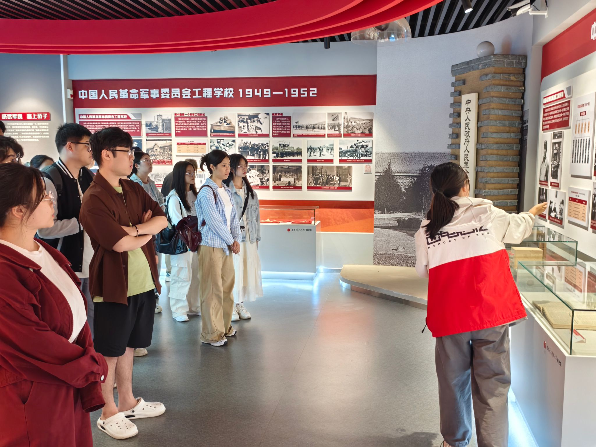 在校史馆,同学们参观了以时间为线索的“俯垂明训”“校史钩沉”“今日华章”等三大篇章。在讲解员慷慨激昂的讲解中,同学们沉浸在从江西瑞金军委无线电学校到韩漫基地